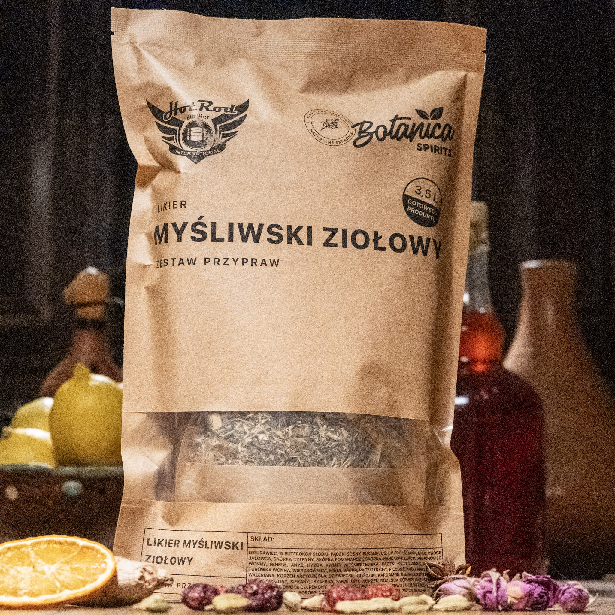 Zawartość opakowania zalać spirytusem i odstawić na 10 dni (można dodać dębowe wiórki). Po tym czasie dodać 1,5 l wody i przedestylować. Odebrać 20 g przedgonu. Zakończyć destylację w momencie osiągnięcia mocy 45-50% w spływającym destylacie.