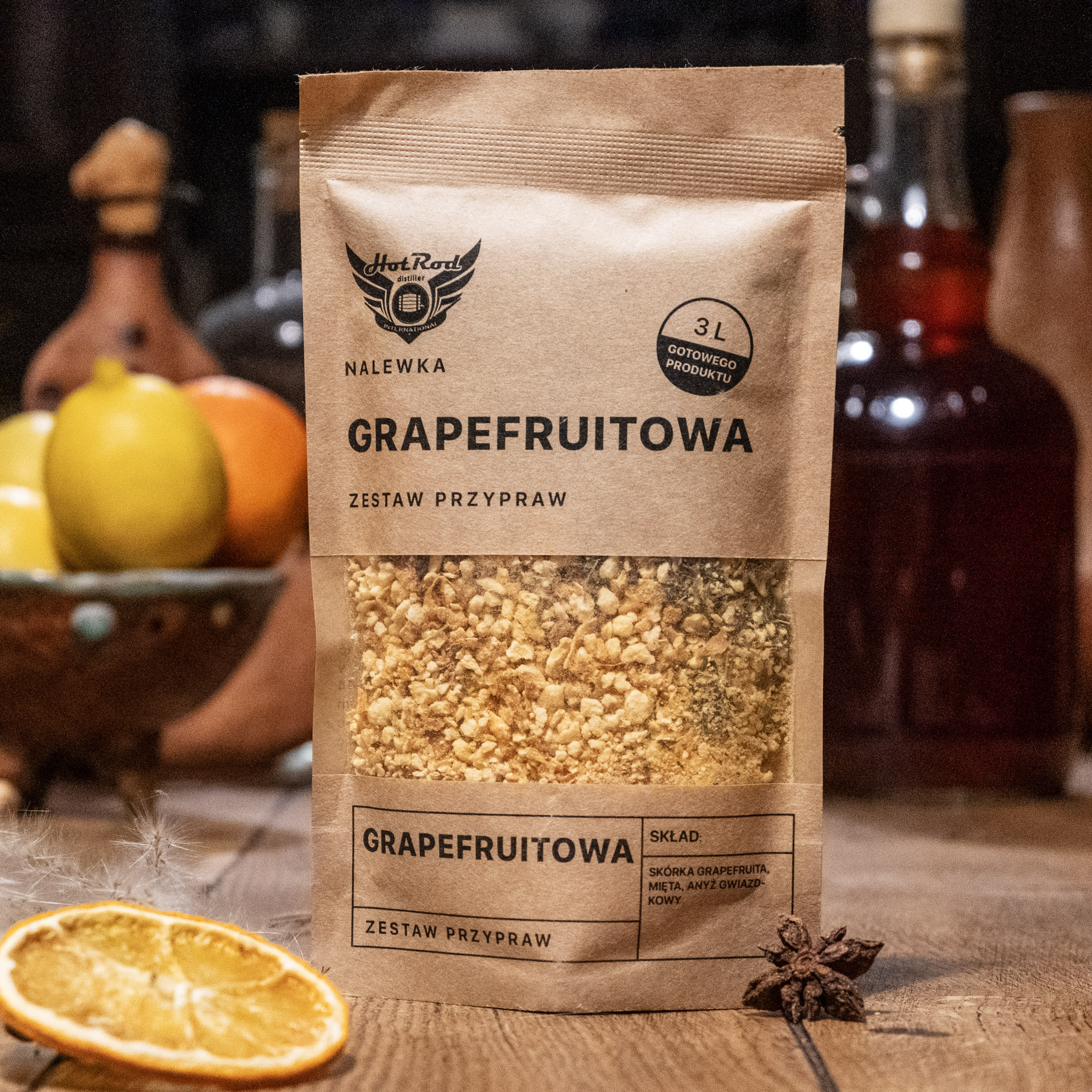 Nasz zestaw przypraw do nalewki grejpfrutowej to mieszanka aromatycznych i smacznych składników, które dodadzą świeżości i bogactwa Twojej domowej nalewce. Skórka grejpfruta dodaje jasnego cytrusowego smaku, który idealnie komponuje się ze świeżą miętą pieprzową i anyżem gwiazdkowatym. Te składniki dodają nalewce lekkiego i chłodnego smaku, dzięki czemu jest ona idealnym wyborem na upalne dni.